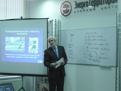 В Учебном центре «Энерго Территория», структурном подразделении ЗАО УК «ЭнТерра», состоялся семинар «Жесткая ошиновка ОРУ и ЗРУ», который должен был помочь проектировщикам и конструкторам избежать ошибок. Жесткую ошиновку открытых и закрытых распределительных устройств изобрели в СССР то ли в конце 20-ых, то ли в начале 30-ых годов прошлого века. Разработали и впервые применили этот способ специалисты Мосэнерго. Причина появления жесткой ошиновки прозаична: в молодой стране советов не хватала алюминия и проводов. Так возникла идея, попробовать заменить провода стальными водопроводными трубами. Очень быстро удобство и экономичность этой технологии поняли в Западной Европе и Америке. С тех пор жесткую ошиновку везде называют «русской»… А на родине о жесткой ошиновке постепенно забыли и практически разучились ее применять. Сейчас жесткую ошиновку используют массово используют при строительстве распределительных устройств напряжением от 35 кВ до 500 кВ, многообразие ее конструкций поражает даже специалистов. Такая популярность объясняется доказанными преимуществами жесткой ошиновки по сравнению с использованием проводов. Среди преимуществ главными являются два. Во-первых, распределительные устройства с жесткой ошиновкой занимают меньше места (до 20%), удобны для сборки и профилактических осмотров (поскольку располагаются невысоко от земли), позволяют экономить трудозатраты при строительстве и монтаже в разы. Ошиновка опирается на высоковольтные аппараты, поэтому нет необходимости в строительстве дополнительных порталов, что уменьшает расход металла, железобетона и объем работ по фундаментам. В качестве доказательства начальник отдела департамента технологической безопасности ФСК ЕЭС Анисим Долин приводит такой пример: если на строительство подстанции с гибкой ошиновкой требуется 6-8 месяцев, то при использовании жесткой ошиновки нужно всего 2 месяца. Кроме того, именно жесткая ошиновка позволила создавать распространенные сегодня модульные системы – комплектные подстанции. Однако сейчас «при строительстве подстанций мощностью 110 кВ применяют древние, чуть ли не столетней давности технологии, - сокрушается Анисим Долин. – Либо, на подстанциях большего напряжения, проектируют конструкции жесткой ошиновки с грубыми ошибками».«Мы редко применяли в своих проектах жесткую ошиновку, - рассказывает главный специалист ЗАО «Тяжпромэлектромет» Александр Панкратов. – Информация о жесткой ошиновке есть, но на семинаре я получил дополнительную информацию, которая многое проясняет. Если раньше нам было проще купить технологии за рубежом, то теперь мы сами будем проектировать и конструировать». «Когда вернусь на предприятие, я непременно расскажу тонкости применения жесткой ошиновки своим коллегам, - продолжает разговор руководитель группы сектора подстанций «УралЭнергоПроекта» Татьяна Бурнашева. – Вся информация, которую дает руководитель семинара (Анисим Петрович Долин), применима, он рассказывает подробно, раскрывая тонкости проектирования конкретных комплексных модулей». «Я занимаюсь жесткой ошиновкой более 30-ти лет и вижу, что проектировщики, разработчики и монтажники не владеют технологиями, - анализирует начальник отдела департамента технологической безопасности ФСК ЕЭС Анисим Долин. – Люди просто н
