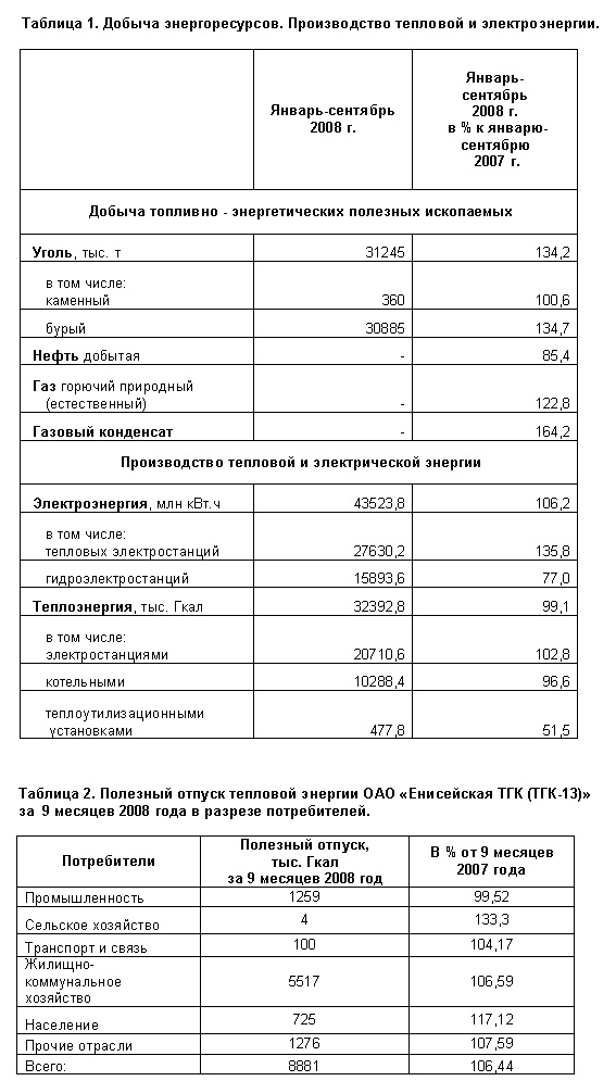 ТЭК Красноярского края: итоги года13.01.09 10:35