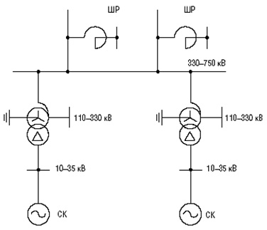 Компенсация реактивной мощностиСтепень компенсации реактивной мощности определена приказом Минпромэнерго РФ № 49 от 22.02.07 «О порядке расчета значений соотношения потребления активной и реактивной мощности для отдельных энергопринимающих устройств (групп энергопринимающих устройств) потребителей электрической энергии, применяемых для определения обязательств сторон в договорах об оказании услуг по передаче электрической энергии (договорах энергоснабжения)». Схема 1. Схема ПС 500 Кв ![]() Схема 2. Новая схема ПС. Предельные значения коэффициента реактивной мощности (часы 7–23 больших нагрузок) Для напряжений 220 кВ и выше коэффициент реактивной мощности определяется на основе расчетов режимов работы электрической сети для нормальной и ремонтной схем. В более сложной электрической сети для снижения потерь активной мощности необходимо уменьшать перетоки реактивной мощности (реактивного тока) за счет выравнивания напряжений в узловых точках с помощью устанавливаемых источников реактивной мощности ИРМ. В системообразующих электрических сетях и межсистемных электрических связях режимы работы по реактивной мощности зависят от согласования характеристик трех основных элементов энергосистемы: станция ЭС, линия электропередачи ЛЭП и потребитель П. Отметим, что передача активной мощности до натурального значения Рнат сопровождается генерацией линией реактивной мощности, а свыше – ее потреблением. Подключение станции к ЛЭП требует от генераторов потребления реактивной мощности, что невозможно осуществить из-за нагревов лобовых частей статоров. Поэтому излишнюю реактивную мощность линий компенсируют реакторами. Номинальный cos синхронных генераторов средней мощности определяется величиной 0,85, а уменьшение нагрузки генераторов сопровождается увеличением их напряжений. В идеальном случае с точки зрения минимальных потерь электроэнергии в системе станция – линия – потребитель необходимо создать такие условия, чтобы генераторы станции работали с номинальным cos , переток дополнительной по линии реактивной мощности отсутствовал, а потребители работали с cos = 1 без потребления реактивной мощности. Рассмотрим эти особенности на примере концентрированной электрической сети, присущей Европейской части России, и на примере электрической сети с длинными линиями Сибири и Дальнего Востока. Для Европейской части электрических сетей ФСК ЕЭС характерны длины линий, например, 500 кВ, не более 300 км. Для реальных загрузок компенсированных ЛЭП до 0,5 Рнат коэффициент мощности cos линий определится величиной 0,99, что не соответствует номинальному cos генераторов. Увеличением напряжения на шинах ЭС на 10 % по сравнению с напряжением в конце ЛЭП cos линии можно снизить до 0,866, приемлемого для генераторов станций. При этом дополнительная реактивная мощность по линии по сравнению с режимом равенства напряжений в начале и конце увеличится до 0,32 Рнат, которая вызовет дополнительные потери на данном участке величиной 2,8 МВт, что делает актуальным применение источников реактивной мощности (ИРМ). Учитывая возросшую стоимость строительства ВЛ, в рыночных условиях возрастает актуальность максимального использования линий электропередачи путём повышения их пропускной способности за счет применения новых технических средств компенсации реак