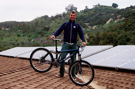 На снимке: Tony Ellsworth – владелец фирмы, торгующей велосипедами на крыше своего нового офиса, которая не только обеспечивает энергией себя, но и выдает ее излишки в общую сеть.