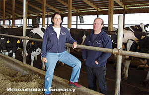 В качестве примера можно привести типичную ферму в американском штате Вермонт. На ферме содержится 1,5 тыс. голов крупного рогатого скота. Скот производит такое количество помета, которого достаточно для производства 1,8 млн. кВт-ч в год. Для производства биогаза используется технология анаэробного сбраживания. Навоз собирают в специальные резервуары, где специальные бактерии при отсутствии доступа кислорода производят биогаз. Технология очень экологична, так как, если бы навоз подвергался естественному гниению, выделялся бы газ метан, который по своим парниковым свойствам в 20 раз разрушительней, чем газ CO2. Отходы, которые остаются в результате процесса выработки биогаза, являются прекрасным удобрением (компостом).