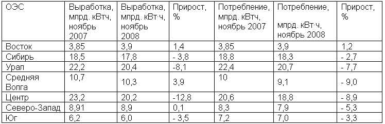 Ноябрь 2008 года в России отмечен серьезным спадом производства и потребления электроэнергии.