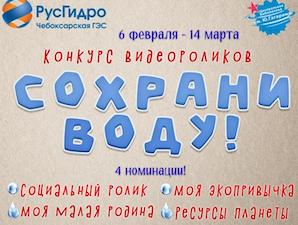 В честь Всемирного дня водных ресурсов, который ежегодно отмечают 22 марта, Чебоксарская ГЭС (ПАО «РусГидро») совместно с Центральной библиотекой имени Ю. Гагарина г. Новочебоксарска приглашают всех желающих принять участие в конкурсе видеороликов «Сохрани воду!».