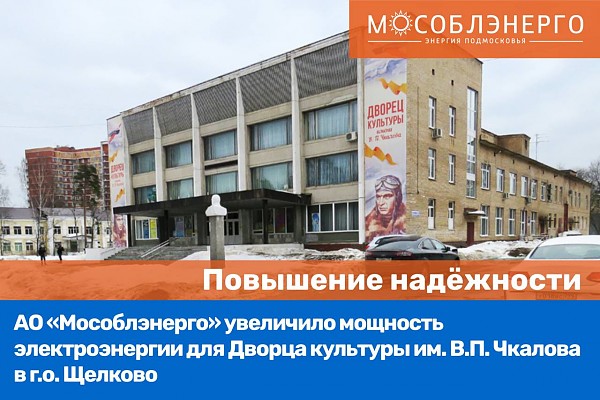 АО «Мособлэнерго» увеличило мощность электроэнергии для Дворца культуры им. В.П. Чкалова в г.о. Щелково.