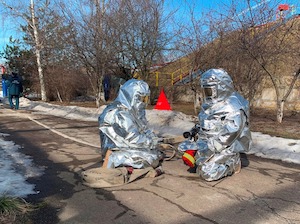 В учениях также принимали участие члены нештатного аварийно-спасательного формирования ТЭЦ-25. Им необходимо было проникнуть в здание после ликвидации возгорания, оценить обстановку и начать разбор завалов. За ликвидацию невыгоревших остатков разлитого мазута отвечали специалисты Центрального аварийно-спасательного отряда «ЭКОСПАС».