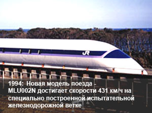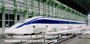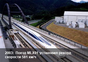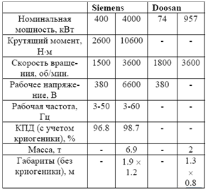 Doosan Heavy Industries В рамках корейской программы по разработке сверхпроводниковых технологий для электроэнергетики (DAPAS) запланировано создание ВТСП электродвигателей мощностью 70 кВт, 1 МВт и 5 МВт. Синхронные электродвигатели на 100 л.с. (74 кВт; 1800 об/мин.) и 1300 л.с. (957 кВт; 3600 об/мин.) были изготовлены в 2004 и 2007 годах. ВТСП обмотки изготовлены из Bi-2223 ленты производства American Superconductor. Рабочая температура обмоток у обоих моторов 30 К, с охлаждением от криокулеров. Siemens Работы над ВТСП электродвигатели начались в Siemens еще в 1999 г. Помимо Siemens в проекте участвуют компании: TransMIT Gesellschaft fur Technologietransfer mbH, ThyssenKrupp Marine Sys-tems AG и Schiffbau-Versuchsanstalt Potsdam GmbH, финансовую поддержку оказывает Министерство по экономике и технологиям Германии. В 2005 г был успешно испытан ВТСП синхронный электродвигатель мощностью 400 кВт, сейчас проходит испытания ВТСП синхронного мотора-генератора на 4 МВт (рис. 2). ВТСП электрические машины отличаются недостижимой для традиционных устройств перегрузочной способностью до 700% по крутящему моменту в кратковременном режиме и 150% в течение 15 минут по мощности. ВТСП обмотки обоих устройств охлаждаются криокулерами через теплообменный газ до температуры 25 К. Основные параметры электрических машин Siemens и Doosan приведены в таблице. Железные дорогиИнженеры давно уже задумывались о том, как можно было бы использовать огромные магнитные поля, создаваемые с помощью сверхпроводников, для магнитной подвески поезда (магнитной левитации). За счет сил взаимного отталкивания между движущимся магнитом и током, индуцируемым в направляющем проводнике, поезд двигался бы плавно, без шума и трения и был бы способен развивать очень большую скорость. Лидером в области применения сверхпроводимости на железной дороге является Япония. В Японии разработки данного направления ведутся уже около 20 лет, за это время выпущено около 10 модификаций поездов.