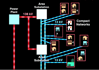 Проект «Гидра»В 2007 году в США началась реализация "Проекта «Гидра» (Project Hydra), за которым внимательно наблюдает вся заинтересованная общественность в мире. Проект реализует корпорация American Superconductor (AMSC). В рамках контракта будет разработана и построена беспрецедентная по защищенности и степени резервирования система электроснабжения центра г. Нью-Йорка, исключающая нарушение электроснабжения при любых авариях (из-за погоды, технологических сбоев, атак террористов). Название «Проект Гидра» («Project Hydra») программа получила по ассоциации c многоголовым мифическим чудовищем. Подобно тому как у него отрастали головы после их отсечения, так электроснабжение должно иметь множество запасных каналов на аварийные случаи (рис. 1). AMSC предлагает новую СП технологию «Secure Super Grids™» для энергосистем большой мощности с защитой от перенапряжения, обеспечивающую безопасное и эффективное снабжение электроэнергией предприятий города. Почему ВТСП кабели могут помочь при решении проблем с постоянно увеличивающейся потребностью мегаполисов в электроэнергии? Во-первых, кабели из ВТСП могут передавать в 10 раз большую мощность по сравнению с традиционными медными кабелями при аналогичном сечении кабельного канала (рис. 2). Во-вторых, замена медных кабелей, используя уже имеющиеся в грунте коммуникации, позволит обеспечить недостающие мощности без дополнительного проведения дорогостоящих земляных работ. Кроме того, при необходимости новых распределительных или подводящих электроэнергию сетей объем прокладочных работ также существенно меньше, чем в случае традиционных медных кабелей.
