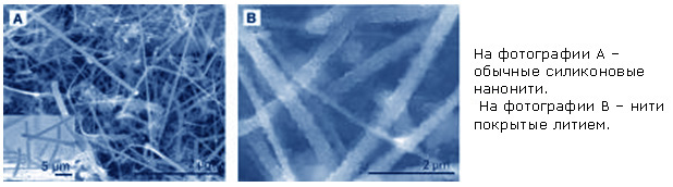 Ученые университета Стэндфорда, разработали способ применения силиконовых (кремниевых) нанонитей, который позволяет увеличить время работы литий-ионных батарей, применяемых в портативных устройствах до 10 раз!