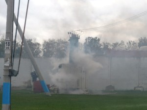 Следующим пунктом учений стала противопожарная тренировка, в ходе которой решались вопросы взаимодействия противопожарных сил и средств района, личного состава нештатных пожарных формирований, профессионального аварийно-спасательного формирования филиала МОЭСК. В тренировке приняли участие третий поисково-спасательный отряд «Мособлпожспаса» и 73 пожарная часть шестого отряда федеральной противопожарной службы Московской области. Тушение пожара осложняла сильная задымленность из-за взрыва бомбы на силовом трансформаторе.