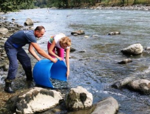 В прошлом году в реки Черноморского бассейна было выпущено свыше 390 тысяч мальков. По специальному заказу ЗАО «КТК-Р» молодь лосося выращивали рыбоводные заводы ООО «Лаура», Адлерский производственно-экспериментальный рыбоводный лососевый завод (ПЭРЛЗ) и ПЭРЛЗ «Джегош». Всего за 2014 и 2015 годы при поддержке КТК популяция черноморского лосося увеличилась более чем на полмиллиона особей.