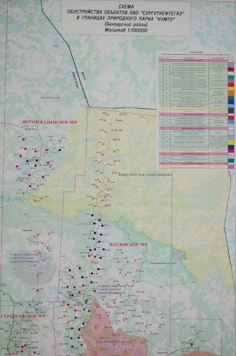 Согласно этой схеме, на территории, которая сейчас относится к заказному режиму, планируется построить 25 кустовых площадок (нефтяных скважин) и дожимно-насосную станцию. Кроме того, около 20 кустовых площадок планируется разместить в зоне заповедного режима, а также на участках археологических памятников и в местах обитания редких птиц.