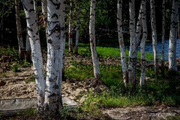 Рабочие побелили берёзы, пострадавшие от разлива нефти
