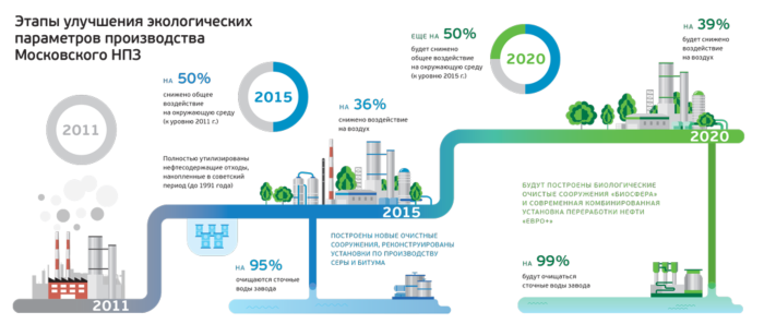 В начале года на МНПЗ прошли работы по реконструкции ключевых технологических объектов предприятия — установки каталитического крекинга (Г-43-107) и первичной переработки нефти (ЭЛОУ-АВТ-6). В частности, установка первичной переработки переведена на работу с жидкого на более экологичное газовое топливо. Выполненные работы позволят увеличить выпуск современного топлива высокого экологического класса Евро-5, уменьшить потребление ресурсов и, как следствие, значительно снизить воздействие на окружающую среду. Также предприятие продолжает развивать систему экологического мониторинга, в том числе с учетом рекомендаций Министерства природы РФ.