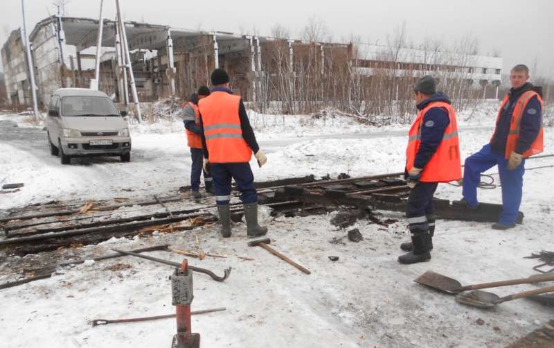 Сахалинские железнодорожники разобрали настил железнодорожного переезда в селе Сосновка Долинского района и перекрыли бетонным блоком единственную дорогу, ведущую к подстанции «Углезаводская» напряжением 220 кВ.