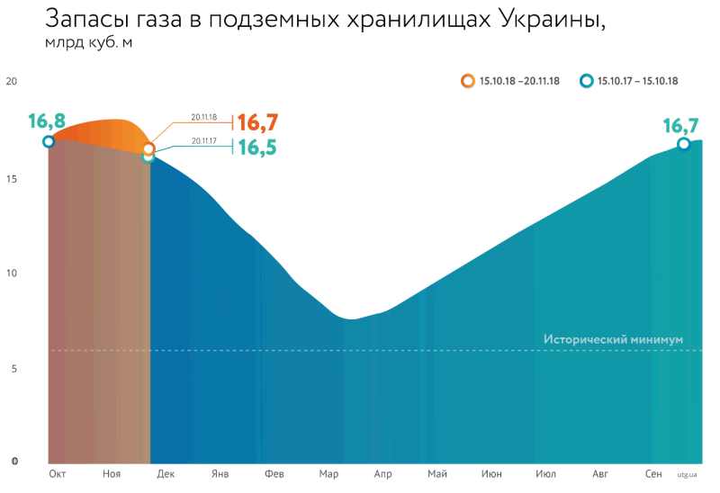 Объемы газа в украинских ПХГ за неделю снизились на 300 млн кубометров25.11.18 12:42