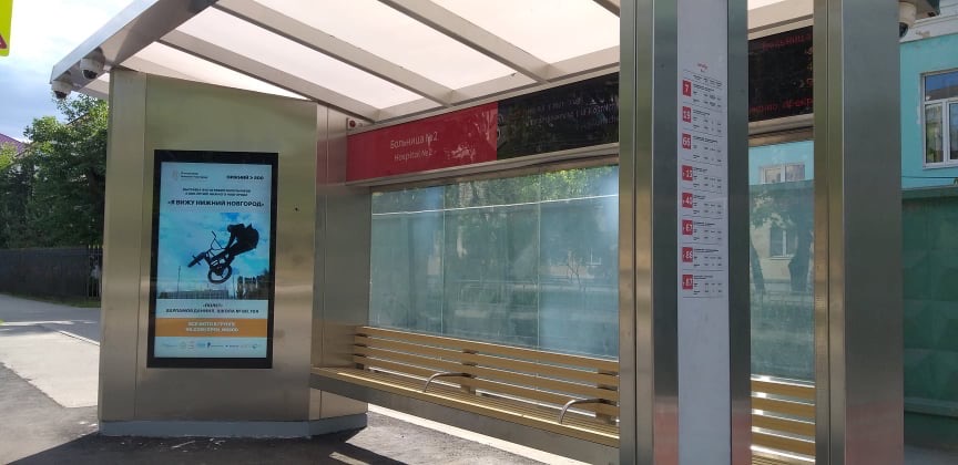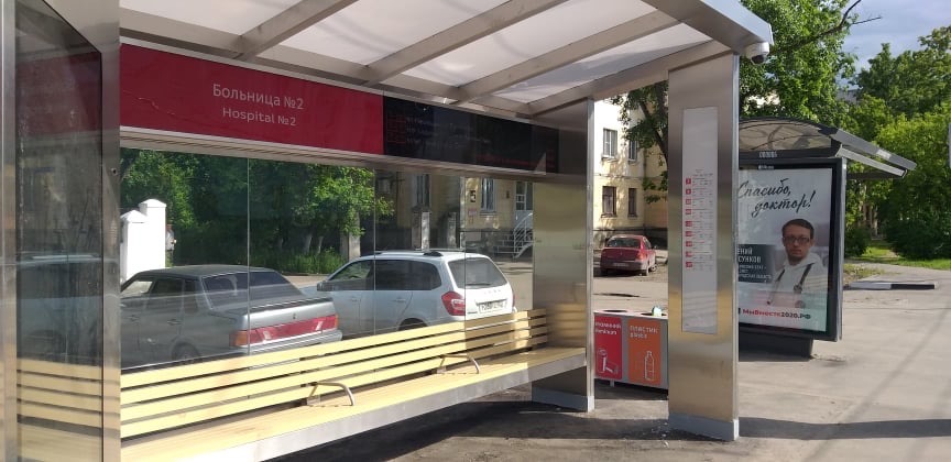 Новые мультимедийные конструкции начали работать на остановках общественного транспорта «Больница №2» на улице Июльских дней.