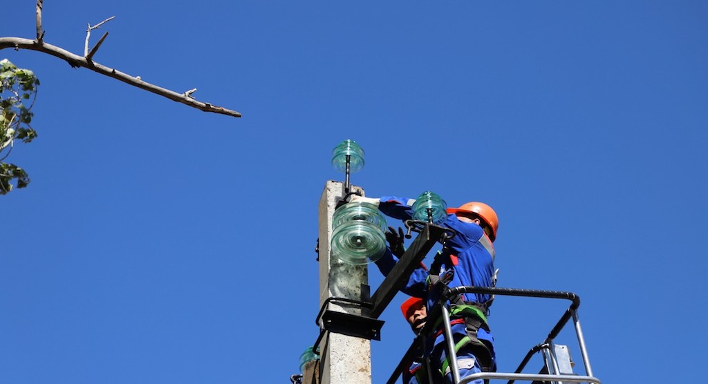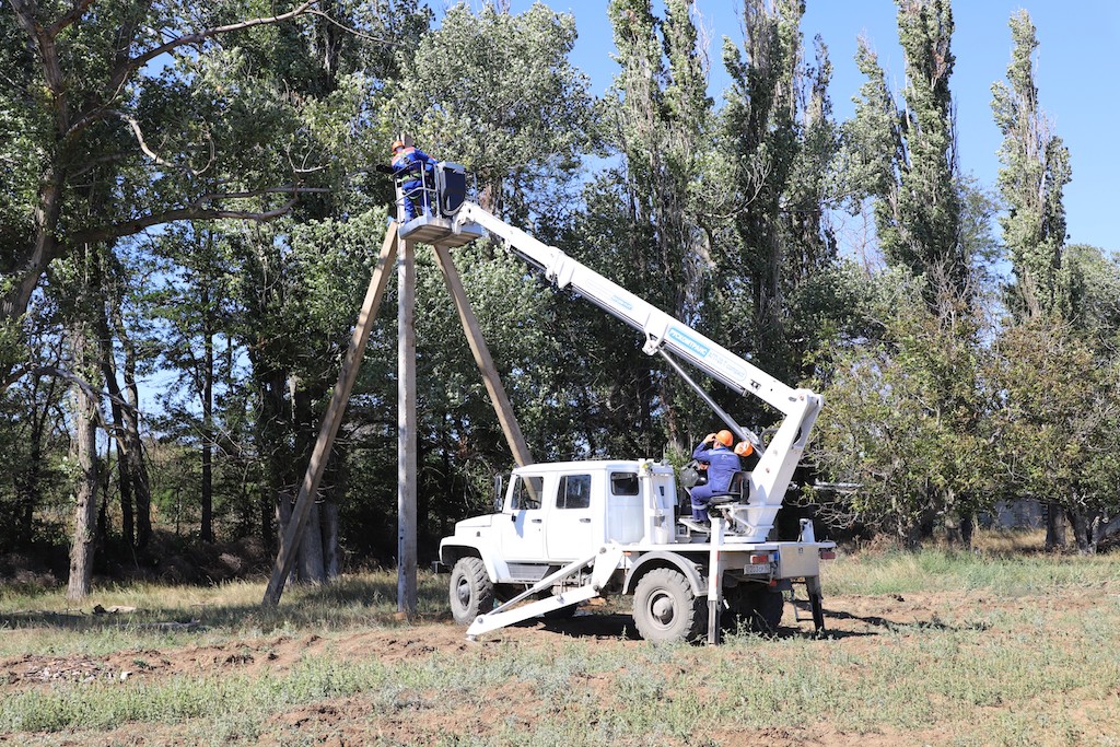 Монтаж линий электропередачи выполняют энергетики Бахчисарайского, Октябрьского и Сакского РЭС, всего задействовано 11 единиц техники и 26 специалистов ГУП РК «Крымэнерго».