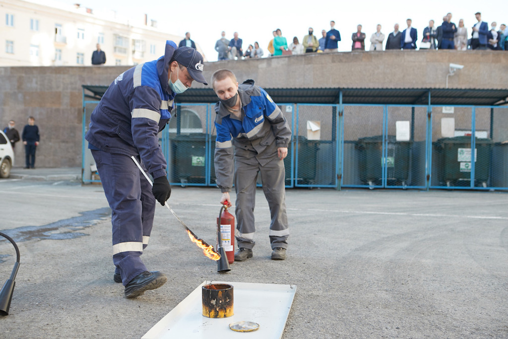 В ходе тренировки из здания эвакуировали 573 человека, в том числе шесть посетителей. На это потребовалось всего 12 минут. После чего для газовиков была проведена показательная демонстрация тушения открытого огня при помощи огнетушителя.