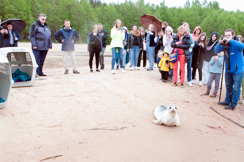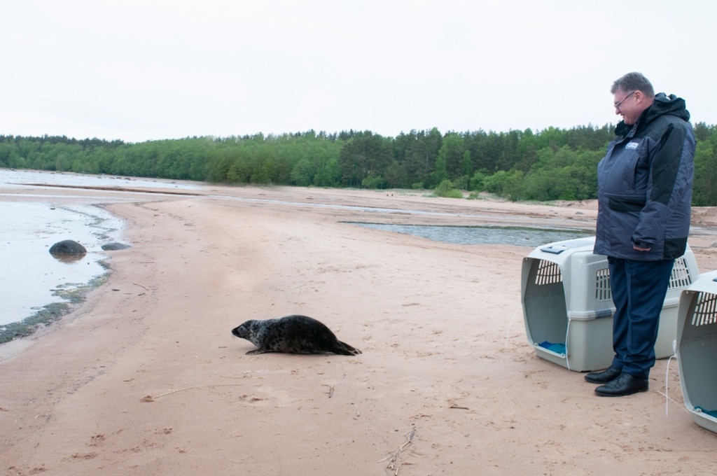 В бухте Желтая Выборгского района Санкт-Петербурга представители Фонда друзей балтийской нерпы совместно с генеральным директором «Газпром трансгаз Санкт-Петербург» выпустили двух щенков серого тюленя в природную среду.