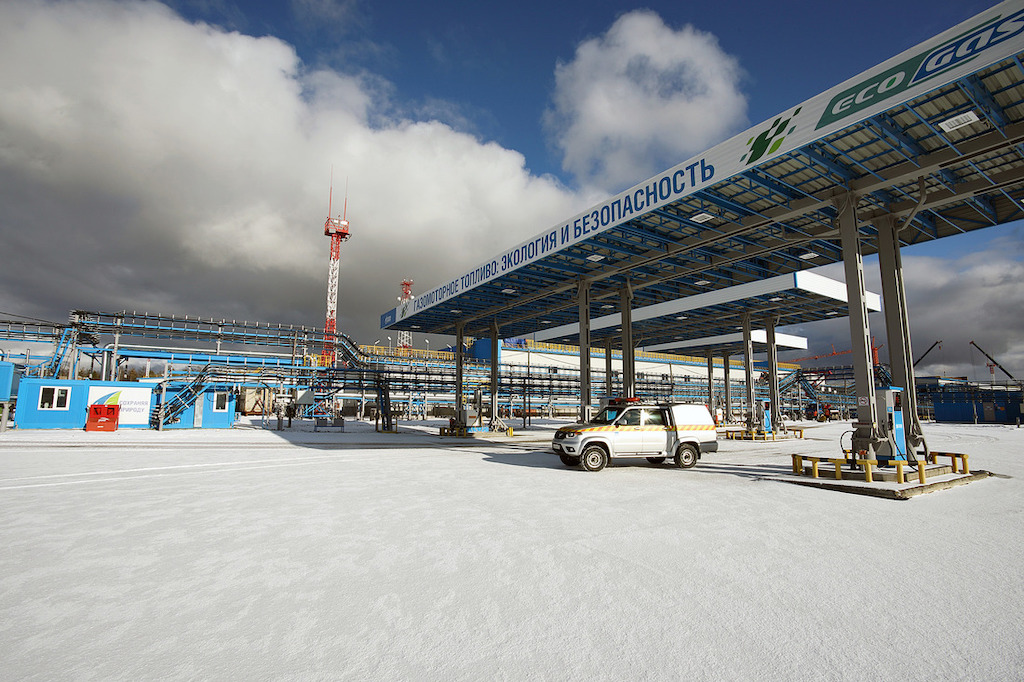 В компании действуют две заправочные станции. На Ямале и на Чаяндинском нефтегазоконденсатном месторождении. На ЧНГКМ для заправки автомобилей используется добываемый здесь же газ. Для объекта, который находится в тайге и значительно удален от цивилизации — это действенное решение, обеспечивающее надежную автономную работу. Здесь построена и работает в тестовом режиме газонаполнительная станция, оборудованная тремя колонками для одновременной заправки шести транспортных средств.