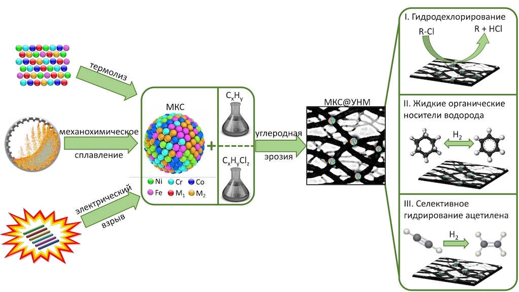 Многокомпонентные сплавы, или высокоэнтропийные сплавы (МКС) — это системы, которые содержат 4-5 и более металлов в сходных концентрациях. Они могут проявлять уникальные физические характеристики. В последнее время подобные системы вызывают большой интерес ученых в плане перспектив использования в ряде каталитических реакций и электрокаталитических приложений.