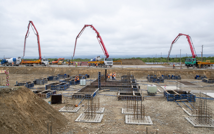 Заработала техника, началась заливка первого бетона в основание трех административно-лабораторных зданий Сахалинского нефтегазового индустриального парка.