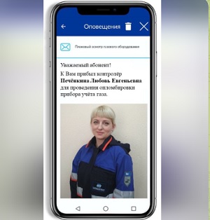За 10-15 минут до визита контролёра в Мобильное приложение «НОВАТЭК-Челябинск» на телефон абонента приходит уведомление с фамилией, именем и фотографией контролёра в спецодежде.