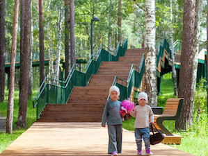В городе Заречном Свердловской области состоялось торжественное открытие проектов, продолжающих «Экопарк» – «Пешеходной зоны с каскадной лестницей» и «Уютной экотропы». Благоустройство