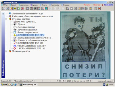 ООО “Фирма ИнформСистем” разработала и выпустила Инновационную Самонастраиваемую MES-Систему «MES-T2 2012» v.6.400.09 для реализации БЕЗЗАТРАТНОЙ ТЕХНОЛОГИИ экономии топлива и для увеличения энергоэффективности тепловых электростанций при интеллектуальной автоматизации расчётов ТЭП в реальном времени. ТЕХНОЛОГИЯ называется БЕЗЗАТРАТНОЙ потому, что затраты на её внедрение на порядок меньше получаемой ежегодной прибыли при окупаемости инвестиций всего за один месяц. ТЕХНОЛОГИЯ экономии топлива включает Технологическую часть и Программную часть. На электростанциях каждую минуту при производстве электрической и тепловой энергии ПЕРЕРАСХОД топлива (фактический расход – нормативный расход) обязательно присутствует, но в разной степени. Днём при максимальной нагрузке он близок к нулю, а ночью при снижении нагрузки он зашкаливает за 30%. И если ПЕРЕРАСХОД допущен, то он уже никакими средствами не может быть компенсирован. А за месяц все эти ПЕРЕРАСХОДЫ суммируются. Следовательно, без ежеминутного или получасового текущего контроля за ПЕРЕРАСХОДОМ топлива и без своевременного воздействия на производственный процесс с целью снижения этого ПЕРЕРАСХОДА, фактический ПЕРЕРАСХОД топлива – огромен. Существующие же месячные расчёты ТЭП в корне методологически не верны, тем более что они подвергаются подгонке под нулевой ПЕРЕРАСХОД топлива. На всех 300 тепловых электростанциях этот неконтролируемый ПЕРЕРАСХОД топлива составляет минимум 10%, или 300 млн. руб. ежегодно на каждой электростанции бесполезно вылетает в трубы. А по России это уже составляет 90 млрд. руб. Этого бесполезно сожженного топлива хватило бы дополнительно для эксплуатации ещё 30 новых электростанций. БЕЗЗАТРАТНАЯ ТЕХНОЛОГИЯ экономии топлива обуславливает следующие три самых главных технологических момента. 1) Расчёты фактических и нормативных ТЭП, а, следовательно, и ПЕРЕРАСХОДА топлива, должны производиться на каждом минутном или получасовом интервале с фиксацией всех значений в базе данных. 2) Все значения ТЭП на иных интервалах (сутки, месяц, год) должны получаться только методом накопления (суммированием, усреднением, взвешиванием) из их значений на поминутных или получасовых интервалах. 3) На БЩУ электростанции должен функционировать мониторинг с текущими значениями ПЕРЕРАСХОДА топлива с целью оперативного контроля и для запуска оптимизационных и интеллектуальных механизмов управления с выдачей советов эксплуатационному персоналу. В этом случае у эксплуатационного персонала естественно появляется принудительная мотивация по экономии топлива. А сейчас более подробно об этих технологических моментах. И самое главное об интервале расчёта ПЕРЕРАСХОДА топлива. Из теории интегрального исчисления известно, что величина площади динамического процесса тем точнее, чем меньше временные интервалы суммируемых расчётов на этих интервалах. Так же, из аксиомы для криволинейного графика известно, что: f(СУММА(xi)/n) не равняется СУММА(f(xi))/n. Это звучит следующим образом: Значение функции от усреднённой величины (неправильно, но есть сейчас) не равно усреднению отдельных значений функций (правильно и так должно быть). А в расчётах нормативных ТЭП используется множество криволинейных нормативных графиков. Другими словами, месячный расчёт ТЭП с использованием накоплен