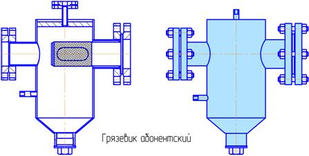 Фильтрация частиц внутри грязевика как вертикального, так и горизонтального происходит с помощью сетчатого фильтрующего элемента. В связи с этим, установка абонентского грязевика должна осуществляться на доступных для последующей очистки и ремонта участках трубопровода. Грязевики абонентские горизонтальные и вертикальные используются для установки на трубопроводах тепловых элеваторных узлов, на электростанциях, в котельных и других как система водоочистки и водоподготовки.