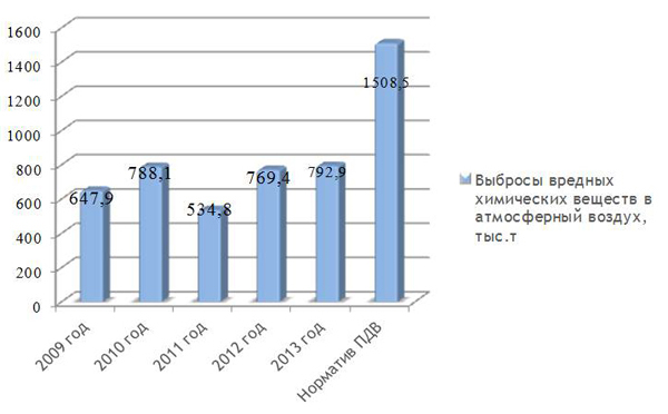Объем выбросов вредных химических веществ в атмосферный воздух