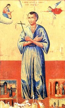 От земли Призвавший тя в Небесныя обители/ сохраняет и по смерти нетленное тело твое, святе,/ ты бо яко пленник приведен бысть в Азию,/ идеже и уподобися Христу./ Сего ради моли Его спастися душам нашим.