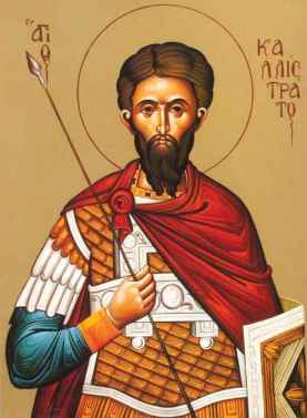 Отец святого был христианином, он воспитал сына в вере и благочестии. Как и его отец, святой Каллистрат стал воином и выделялся среди соратников-язычников добрым поведением и кротким нравом. Ночами, когда все спали, он обычно вставал на молитву.