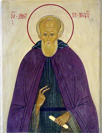 Свыше от Бога, преподобне,/ благодать приял еси духовную,/ и от Него убо познался еси, блаженне,/ того ради и ты духом познал еси лучшая Его,/ будущаго века пребывание,/ и постнически испытався во своих обителех./ И ныне со ангели ликовствуя,/ Спасу всех за ны молися, святе Димитрие, да вси вопием:/ Слава Давшему ти крепость,/ слава Венчавшему тя,/ слава Действующему тобою всем исцеления.