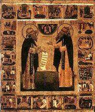 Преподобный Зосима, игумен Соловецкий, великий светильник русского Севера, основатель иноческого общежития на Соловецком острове, родился в Новгородской епархии, в селе Толвуе близ Онежского озера. С юных лет он воспитывался в благочестии, а после смерти родителей раздал имущество и принял постриг.