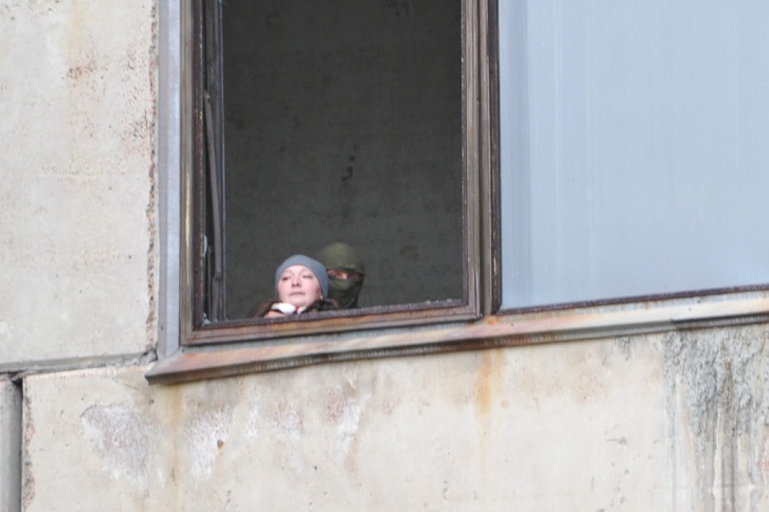 Среди заложников оказались и женщины, которых условные «террористы» продемонстрировали военным через окно.