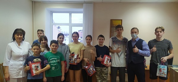 На собранные работниками денежные средства были приобретены сладкие подарки.