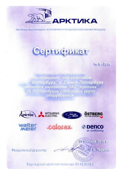 ООО «ВЕТЕРБУРГ» - официальный партнер ЗАО «Арктика» по дистрибуции оборудования для систем вентиляции и кондиционирования воздуха.