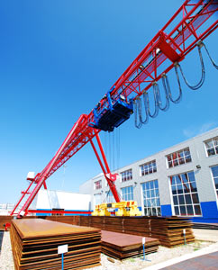 Козловой кран предназначен для перегрузки металлопроката и арматуры для белорусских машиностоительных заводов. Грузоподъемность крана составляет 20 тонн, пролет 25 м, высота подъема 10 м. Кран оснащен подвижной кабиной и частотной системой управления, позволяющей обеспечить высокую точность, плавную регулировку скорости и безопасность подъема и опускания груза. Режим работы крана — А5, температурный интервал, в котором может работать кран, от -40° до +40°С.