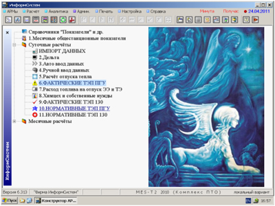 ИнформСистем: Загадка Сфинкса в электроэнергетике ![]() ООО "Фирма ИнформСистем" разработала и выпустила Инновационную Самонастраиваемую MES-Систему «MES-T2 2010» v.6.313.31 для реализации БЕЗЗАТРАТНОЙ ТЕХНОЛОГИИ экономии топлива и для увеличения энергоэффективности тепловых электростанций при интеллектуальной автоматизации расчётов ТЭП в реальном времени.
