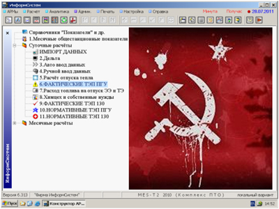 ИнформСистем: Современные энергоблоки ПГУ с устаревшей технологией ![]() ООО "Фирма ИнформСистем" разработала и выпустила Инновационную Самонастраиваемую MES-Систему «MES-T2 2010» v.6.313.53 для реализации БЕЗЗАТРАТНОЙ ТЕХНОЛОГИИ экономии топлива и для увеличения энергоэффективности тепловых электростанций при интеллектуальной автоматизации расчётов ТЭП в реальном времени.