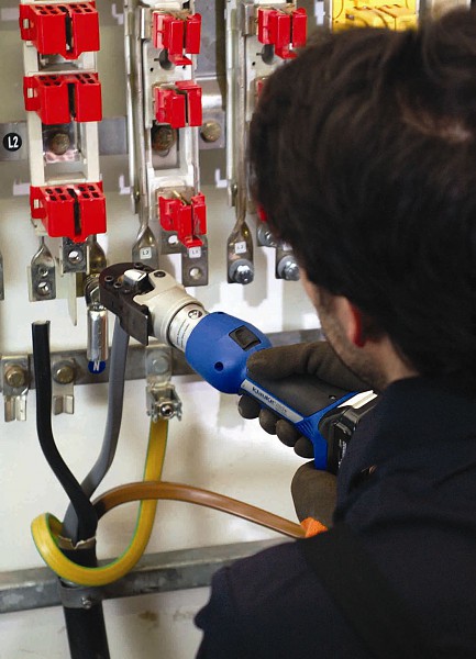 ESG25-L может резать медный и алюминиевый кабель, в том числе бронированный тонкой стальной лентой, алюмо-стальные проводники (ACSR), а также - сплошные изделия круглого сечения из меди, алюминия и стали (например, шпильки, болты, пруток). Кроме того этот резак превосходно справляется с резкой особогибких кабелей с тонкопроволочными жилами. Инструмент снабжен специально разработанной режущей головой закрытого типа, что позволяет применять его также и для резки некоторых видов стальных тросов. Максимально возможный диаметр разрезаемого материала - 25 мм, усилие резки - 50 кН. ESG25-L - очень прочный и чрезвычайно легкий инструмент, его вес вместе с аккумулятором составляет 2,1 кг. Компактный и удобный корпус инструмента в месте хвата выполнен с мягким резиновым покрытием, благодаря которому инструмент удобно держать одной рукой и исключено его выскальзывание в процессе работы. Расположение центра тяжести инструмента оптимизировано, что упрощает работу с инструментом и снижает утомляемость оператора при выполнении больших объемов работ. Встроенный в корпус светодиод белого свечения обеспечивает яркую подсветку зоны резки, что позволяет работать инструментом даже в условиях недостаточной видимости, а многофункциональный красный светодиод информирует о состоянии аккумулятора и о необходимости проведения техобслуживания инструмента. В инструменте ESG25-L реализована функция "управление одной кнопкой", уже хорошо зарекомендовавшая себя в инструментах для опрессовки кабельных наконечников. Во всех инструментах Klauke серии mini+ для резки и опрессовки используются особомощные Li-Ion аккумуляторы напряжением 18В. Преимущество таких аккумуляторов - исключительно малое время время зарядки, составляющее примерно 15 или 22 мин (в зависимости от емкости аккумулятора). При этом Li-ion аккумуляторы практически не имеют эффекта «памяти» и саморазряда. Инструмент всегда готов к применению, даже после длительных перерывов в работе. При завершении операции резки схождение лезвий прекращается и поршень гидросистемы автоматически возвращается в исходное положение. Также предусмотрена и возможность возврата лезвий в исходное положение в любой момент в случае необходимости, для чего достаточно нажать кнопку «возврат» на корпусе инструмента. Важнейшей составляющей системы обеспечения безопасности при работе с кабелерезом ESG25-L является функция моментальной остановки двигателя. Инструмент реагирует мгновенно, движение лезвий прекращается сразу же после того, как оператор отпускает кнопку «пуск». В инструменте ESG25-L реализована еще одна полезная функция – возможность остановки возврата лезвий в исходное положение после выполнения операции резки: при автоматическом возврате поршня гидросистемы в исходное положение оператору достаточно нажать повторно кнопку «пуск» для фиксации лезвий в нужном положении. Это очень удобно при выполнении большого количества однотипных операций резки - сокращаются временные и энергозатраты, что позволяет выполнять большее количество операций на одном заряде аккумулятора. Новость опубликована компанией: Клауке РУС