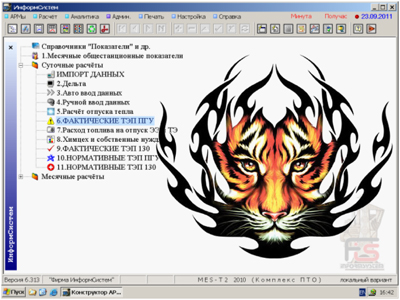 ИнформСистем: MES - современный инструментарий для электростанций ![]() ООО “Фирма ИнформСистем” разработала и выпустила Инновационную Самонастраиваемую MES-Систему «MES-T2 2010» v.6.313.66 для реализации БЕЗЗАТРАТНОЙ ТЕХНОЛОГИИ экономии топлива и для увеличения энергоэффективности тепловых электростанций при интеллектуальной автоматизации расчётов ТЭП в реальном времени.