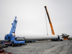 20 сентября 2013 года начат монтаж нижней секции башни ветроустановок, весом около 80 тонн. Для этого используется кран, грузоподъемностью 400 тонн. Уже в октябре начнется монтаж следующих секций башни, а также ступицы, гондолы и лопастей. Его осуществляет основной кран, грузоподъемностью 750 тонн и три вспомогательных крана, грузоподъемностью от 160 до 220 тонн. Общий вес конструкции ветротурбины равен 400 тоннам.