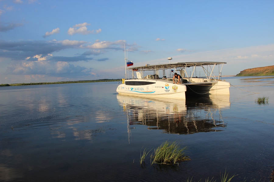 комплекса гидрохимических показателей, анализ на биогены. Также ведётся изучение солнечной радиации, энергоэффективности комплексной энергоустановки катамарана, исследование береговой инфраструктуры внутреннего водного транспорта, - говорит руководитель проекта и капитан экспедиции “Эковолна” Евгений Казанов.