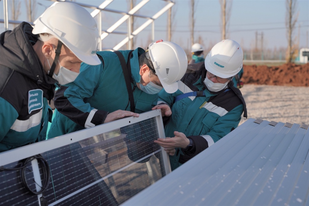 СЭС состоит из 10 080 фотоэлектрических модулей. Угол наклона панелей не дает задерживаться на поверхности снегу и не мешает работе станции даже зимой», - отметил Евгений Семенько.