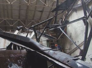 Проектная группа разработала технические решения по восстановлению разрушенной кровли и стеновых панелей машинного зала.