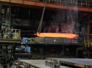 Для штамповки днища применяются наземные нагревательные печи, гидравлический штамповочный пресс двойного действия с усилием более 15000 тонн и закалочный комплекс. Заготовка из высокопрочной стали толщиной 140 мм проходит двухэтапную термическую обработку – нагрев и быстрое охлаждение. Нагрев листа в печи происходит при температуре более 900 °С. Далее заготовка отправляется под пресс, а затем в закалочный бак – для закаливания стали. По завершении термической обработки днища диаметром 4 метра отправляются на контрольные испытания, после которых будут использоваться в дальнейшей работе. Штамповка следующих четырех днищ запланирована на ноябрь.