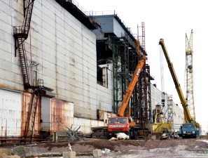 Кроме того, кран КС – 8165 будет использован для монтажа пространственного блока покрытия, которым будет закрыт проем в кровле машзала блока №4 в осях 50-52. Для подъема и установки пространственного блока покрытия на площадке будет смонтирован еще один, четвертый по счету, грузоподъемный кран «POTAIN MD-3200». Все металлоконструкции пространственного блока покрытия уже доставлены в 10 км зону, и часть из них уже завезена на промплощадку ЧАЭС для укрупненной сборки.