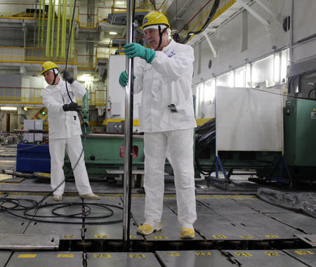 «Думаю, зарубежным экспертам МАГАТЭ будет интересно увидеть, как мы выполняем перегрузку топлива, не останавливая реактор. Для реализации этого преимущества РБМК (реактора большой мощности канального) в Советском Союзе была разработана и создана уникальная разгрузочно-загрузочная машина. В 2013 году мы модернизировали систему управления РЗМ: заменили то оборудование, что устарело физически и морально. Сейчас на РЗМ энергоблока № 4 ввели в промышленную эксплуатацию информационно-измерительную систему, которая позволяет делать перегрузку топлива в автоматическом режиме, что ещё выше поднимает безопасность этого процесса, поскольку в нём уменьшается роль человеческого фактора», - сообщил Сергей Петкевич, исполняющий обязанности начальника участка по техническому обслуживанию РЗМ (разгрузочно-загрузочной машины).
